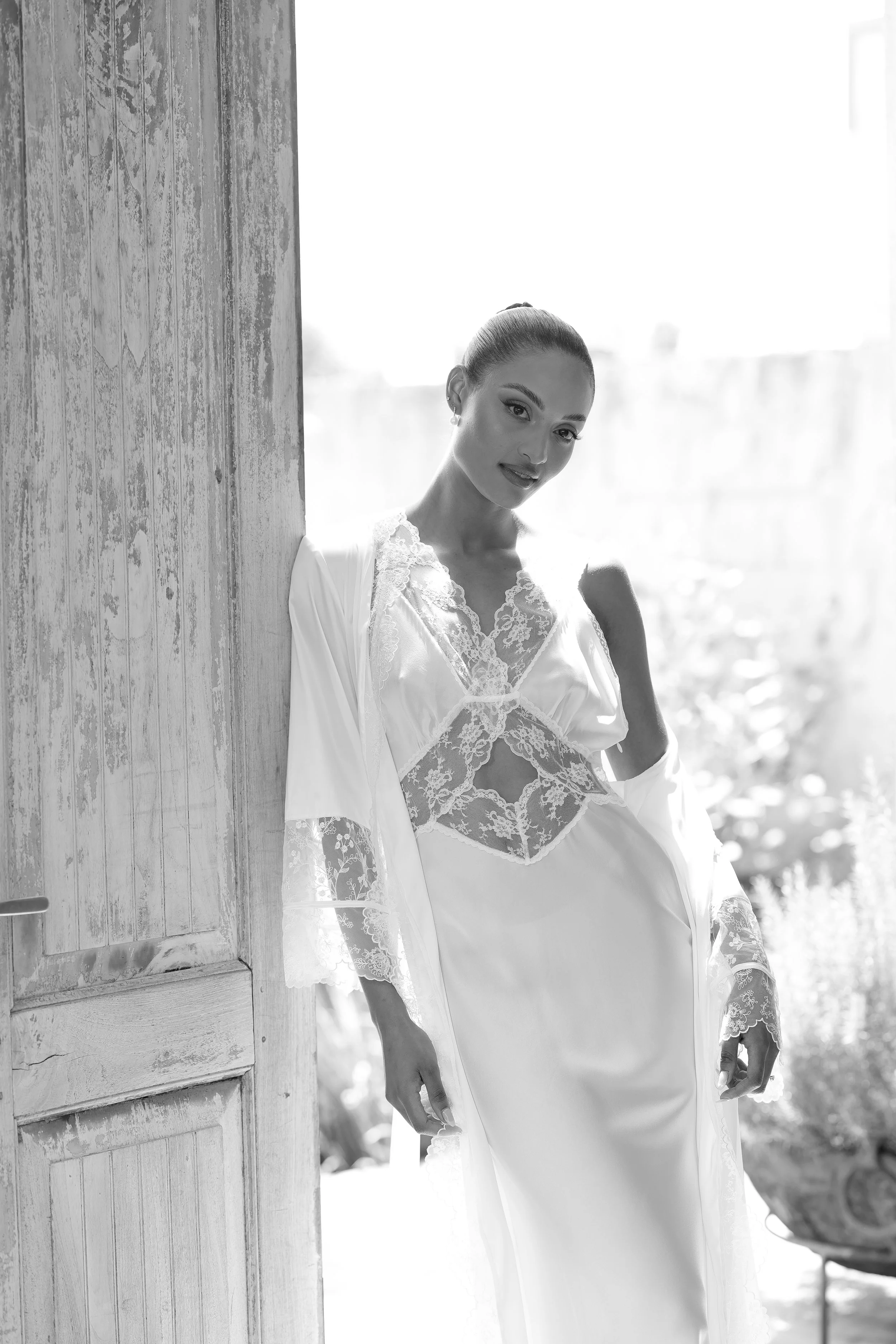 Inside, every detail is considered. Dedicated hair and makeup stations. A long banquet table for accessories and the small rituals of the morning. A private courtyard for fresh air and quiet moments.